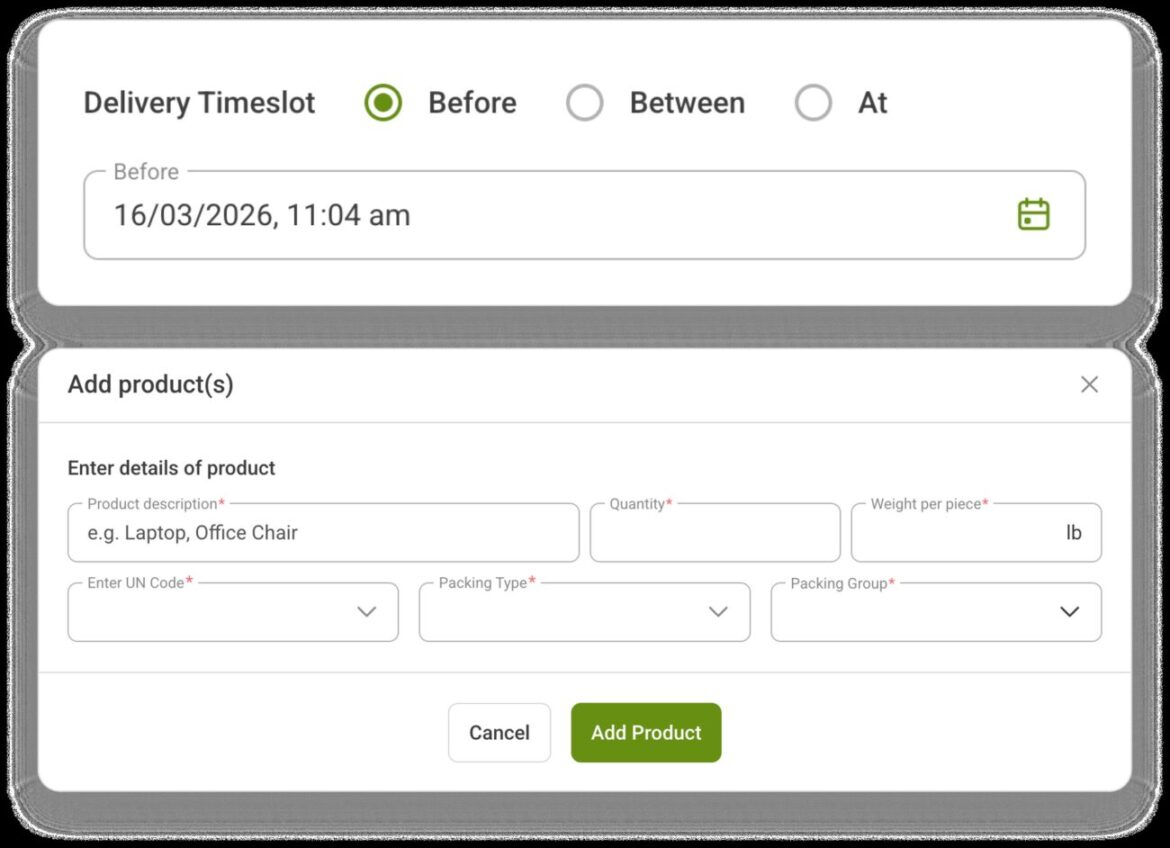 Booking is fully integrated into the CtrlChain system. Customers can schedule shipments with complete oversight from start to finish, working with certified carriers and specialised transport options including: