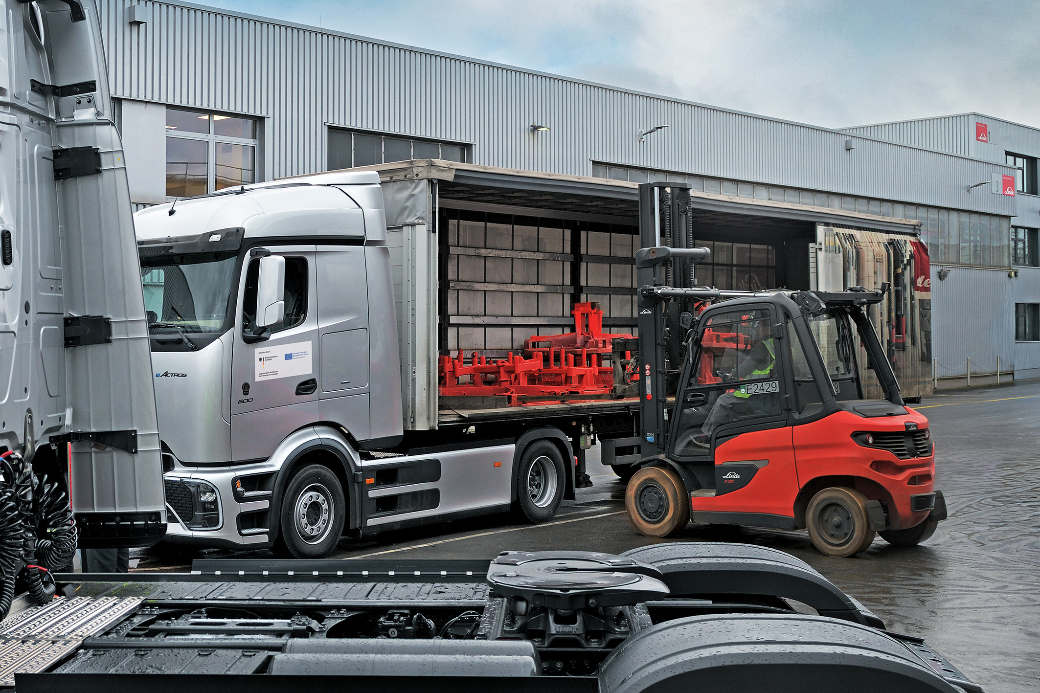 The new 42-ton tractor units, which have a battery capacity of 600 kWh and a range of 500 km, as well as the ten additional light commercial vehicles, which weigh up to 3.5 tons, and the charging infrastructure were funded under the German Federal Ministry of Digital and Transport’s guideline on the promotion of light and heavy commercial vehicles with alternative, climate-friendly drive systems (KsNI). Part of this funding comes from the EU’s German Recovery and Resilience Plan (GRRP). “The procurement of these vehicles is an important step in the electrification of our internal logistics,” emphasizes Franz Huber, Project Manager Energy Solutions at Linde MH. With its new electric vehicle fleet, the company aims to save around 180 tons of CO2 per year. The heavy trucks will be used for shuttle traffic between the foundry and the assembly plant, and the electric transporters will help make logistics between regional locations emission-free. For instance, they deliver canteen supplies.